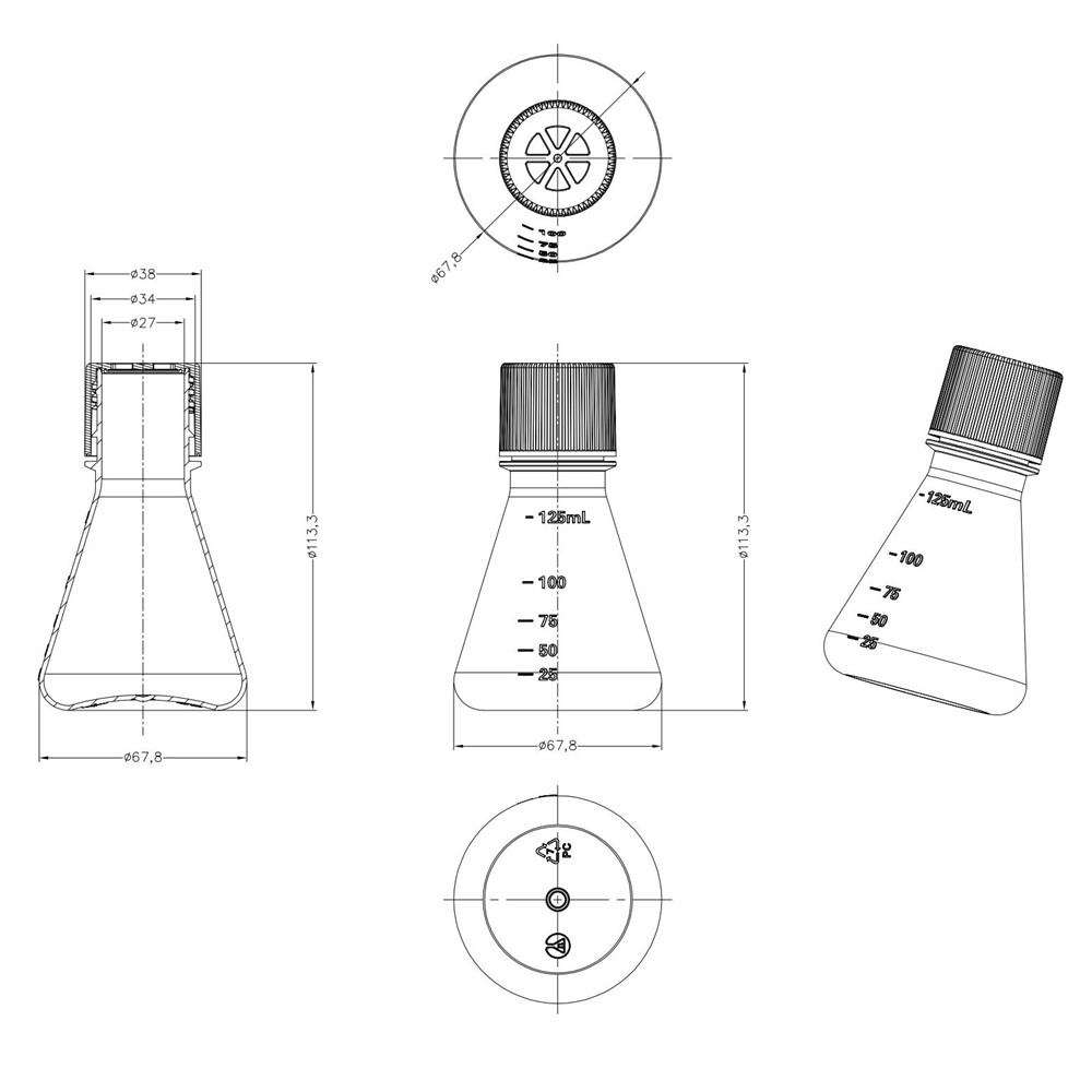 125mL PC Erlenmeyer Flask (Vented,Conical Flask,RNase & DNase Free,Sterile)