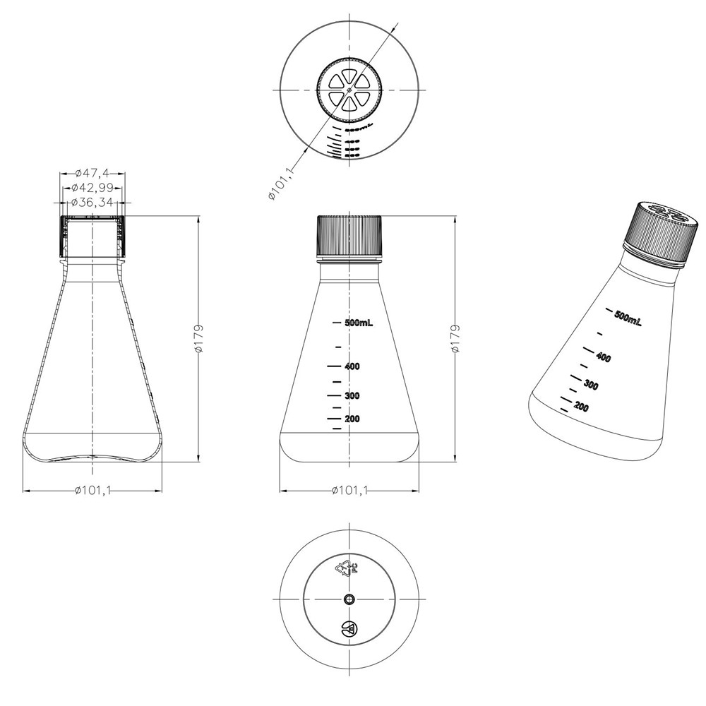 500mL PC Erlenmeyer Flask (Vented,Conical Flask,RNase & DNase Free,Sterile)