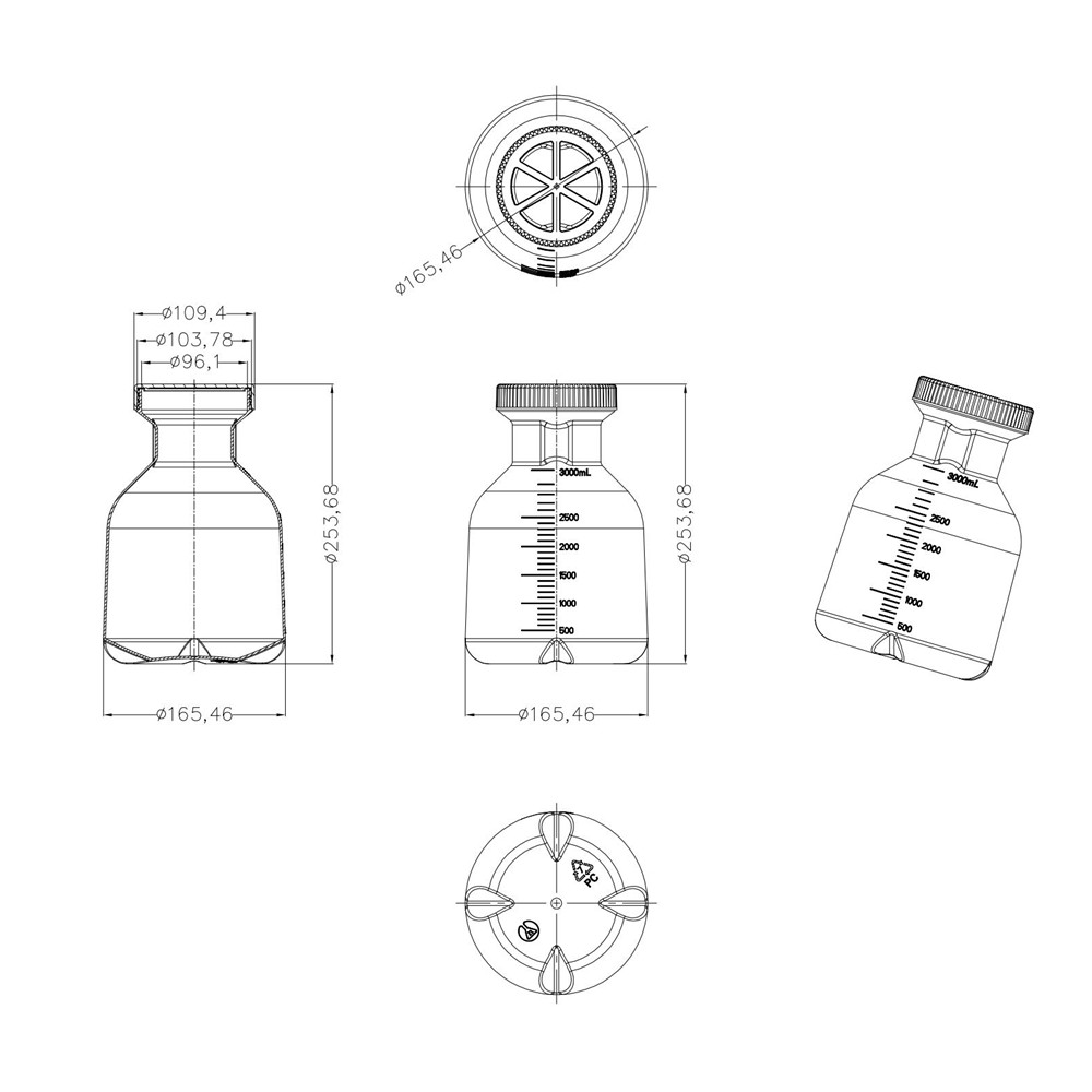 3L Erlenmeyer Flask, Vent Cap, Baffled Bottom, PC, Sterile